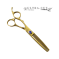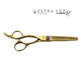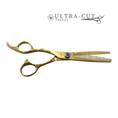 Ce ciseau est doté d'un manche offset avec pouce ergonomique courbé vers le bas pour vous offrir un bon confort au niveau de l'épaule ainsi qu'au niveau du poignet. Son appui-doigt moulé assure la stabilité de la main. Muni d'une lame composée d'acier 9cr13, ce modèle très versatile autant pour les coupes droite que technique d'effilage . Son look est vraiment hot avec le manche gravé , Couleur or intégré sur le ciseau. Ciseau amincir enlevant 50% du cheveux avec dent en v.