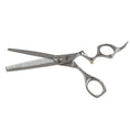 Ce ciseau est doté d'un manche offset ergonomique qui vous permet d'avoir la main alignée avec la lame, offrant un excellent contrôle et une stabilité accrue. Son appui-doigt moulé au ciseau stabilise grandement sa tenue. La lame composée d'acier 440C assure une coupe droite. Ce modèle est recommandé pour les hommes avec une bonne main, et les coupes pour homme. Le ciseau amincisseur enlève 50% du cheveu grâce à ses 33 dents en "V".