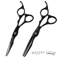 Ce ciseau est doté d'un manche offset pour vous permettre de travailler avec l'épaule basse. Muni d'une lame largeur supérieure composée d'alliage 440a , ce modèle assure une douceur et une sensation incroyable pour le coiffeur. Sa lame de type épée assure une performance pour les gros cheveux. Il est idéal pour la technique d'effilage ainsi qu'une coupe franche. Le ciseau amincir enlève 50% du cheveux avec dents en v.